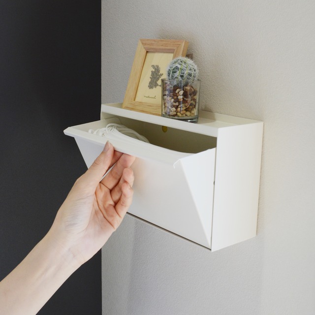 マグネット・掛け・置き3WAYで設置できるスチール製のマスクストッカー。 玄関扉などのスチール面につけたり、置き型としても使用可能。 フラップ式扉で前に大きく開くので、不織布製のマスクだけでなく、様々な形状のマスクにも対応。小物なども収納できます。 収納部は取り外し可能で補充もらくらく。 約1か月分(30枚)のマスクが収納できます。 上部には鍵などの小物が置けるもの便利なポイント。 お出かけ前の忘れ物防止にも。 【サイズ】 約幅210×奥行85×高さ135mm 【材質】 スチール(粉体塗装) マグネット(貼付済み) 【製品重量】 約1.0kg 【耐荷重】 1kg 【付属品】 クッション材 【備考】 完成品 *表記サイズは製品により実物と誤差が生じることがございます。 *改良のため、予告なく仕様、デザイン、価格の変更または販売中止・生産中止となる場合がございます。