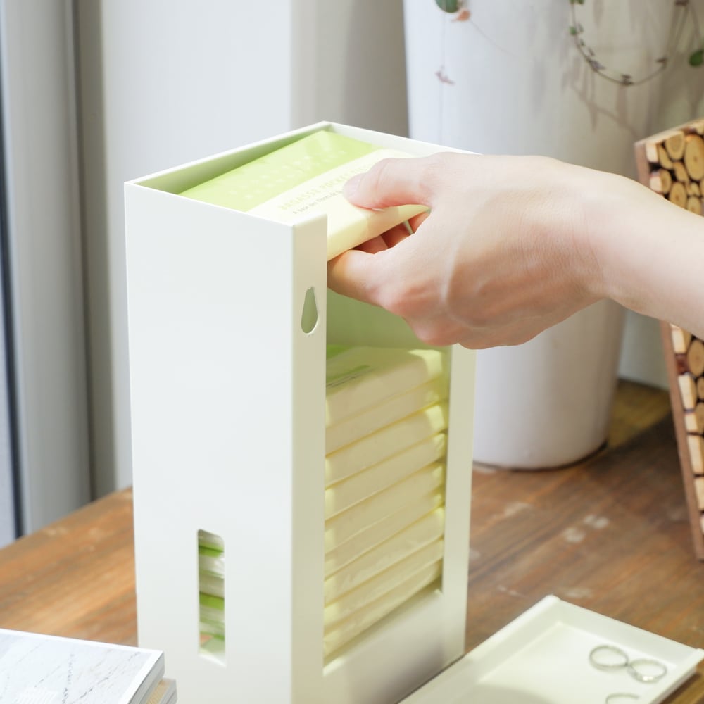 たまりがちなポケットティッシュをすっきり収納できるストッカー。