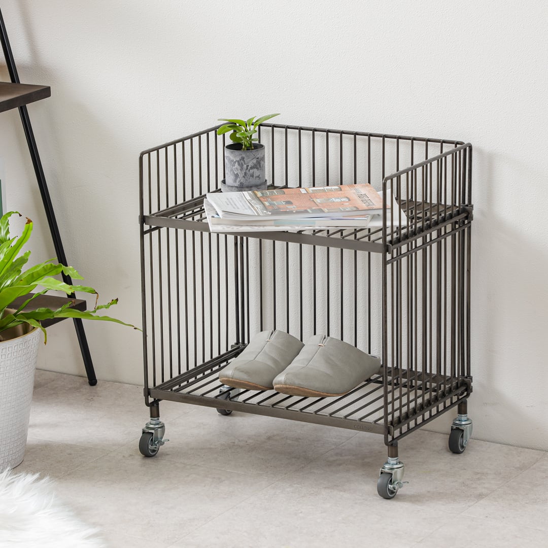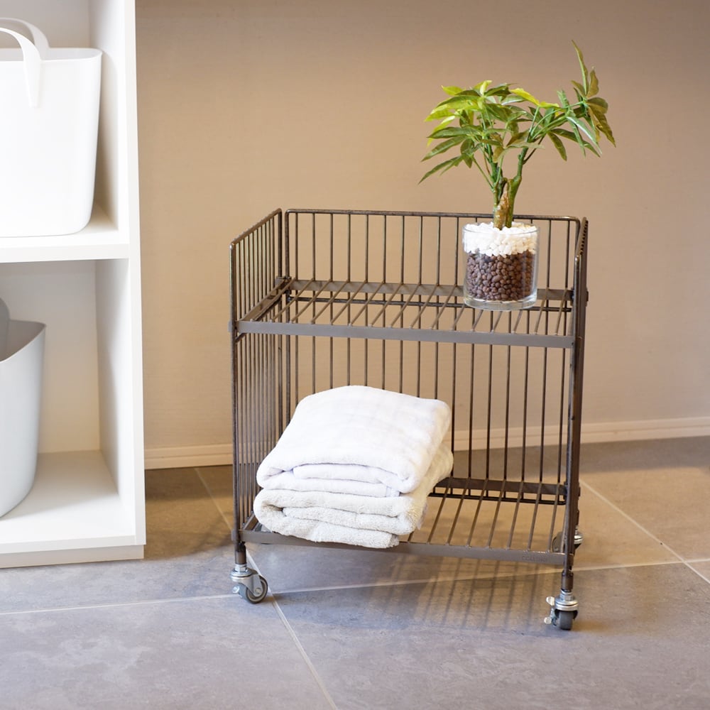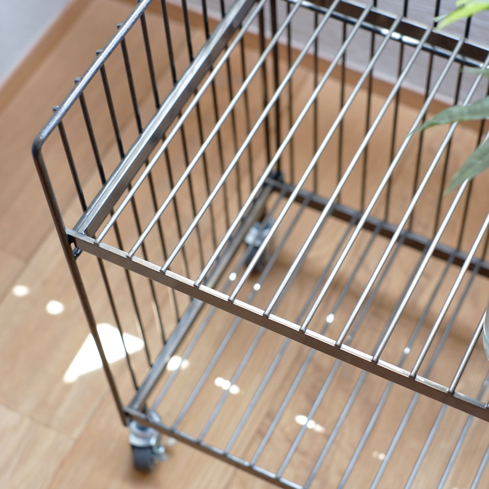 鉄ならではの重厚感や無機質でインダストリアルな雰囲気が魅力のワイヤーワゴン。