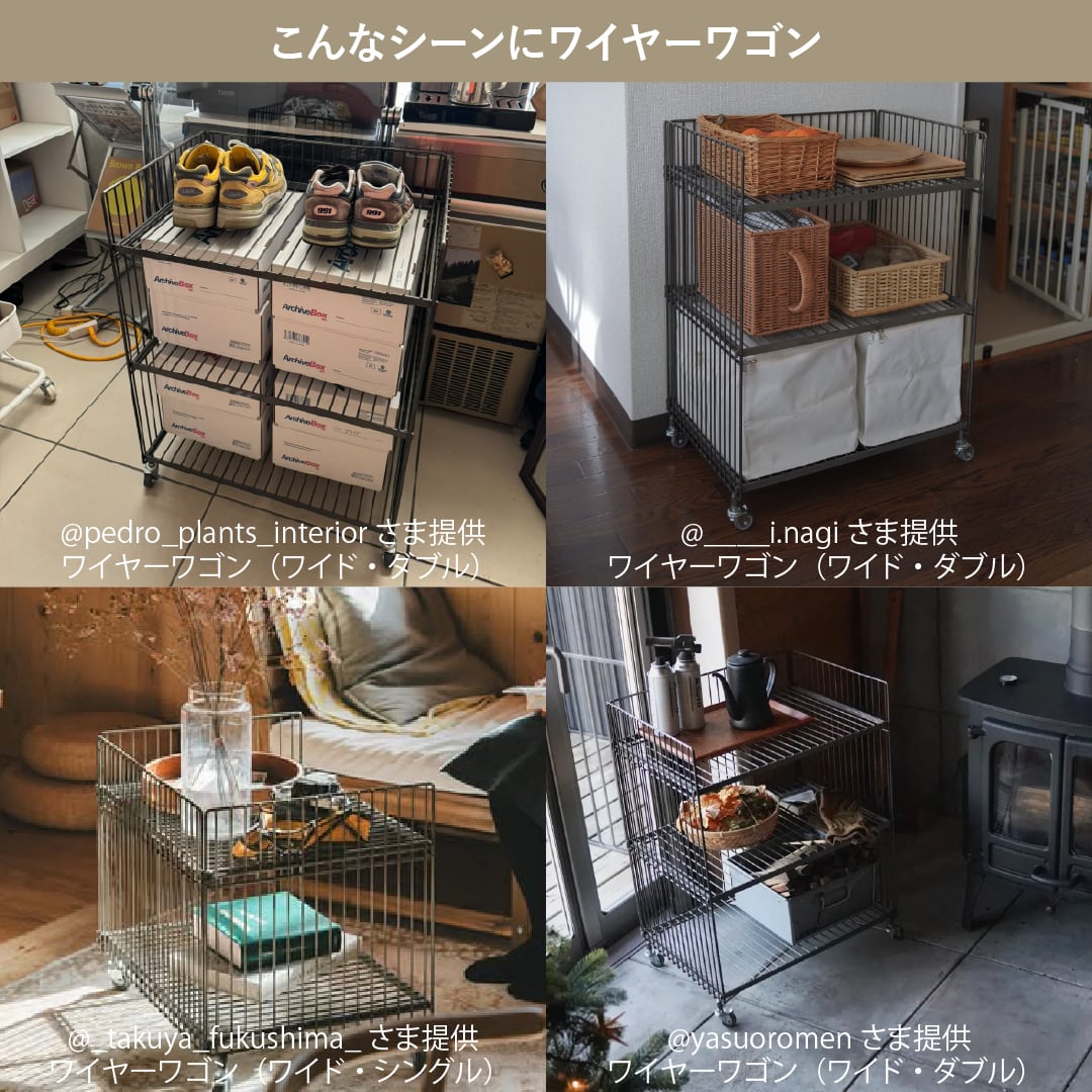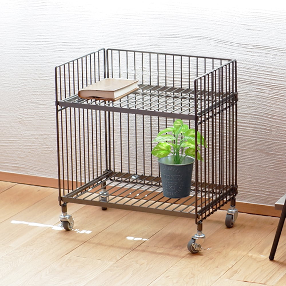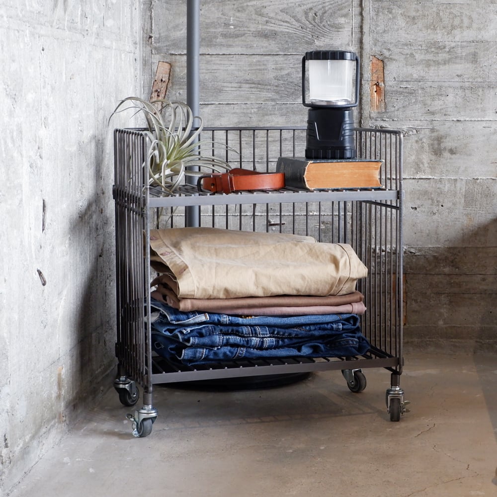 鉄ならではの重厚感や無機質でインダストリアルな雰囲気が魅力のワイヤーワゴン。