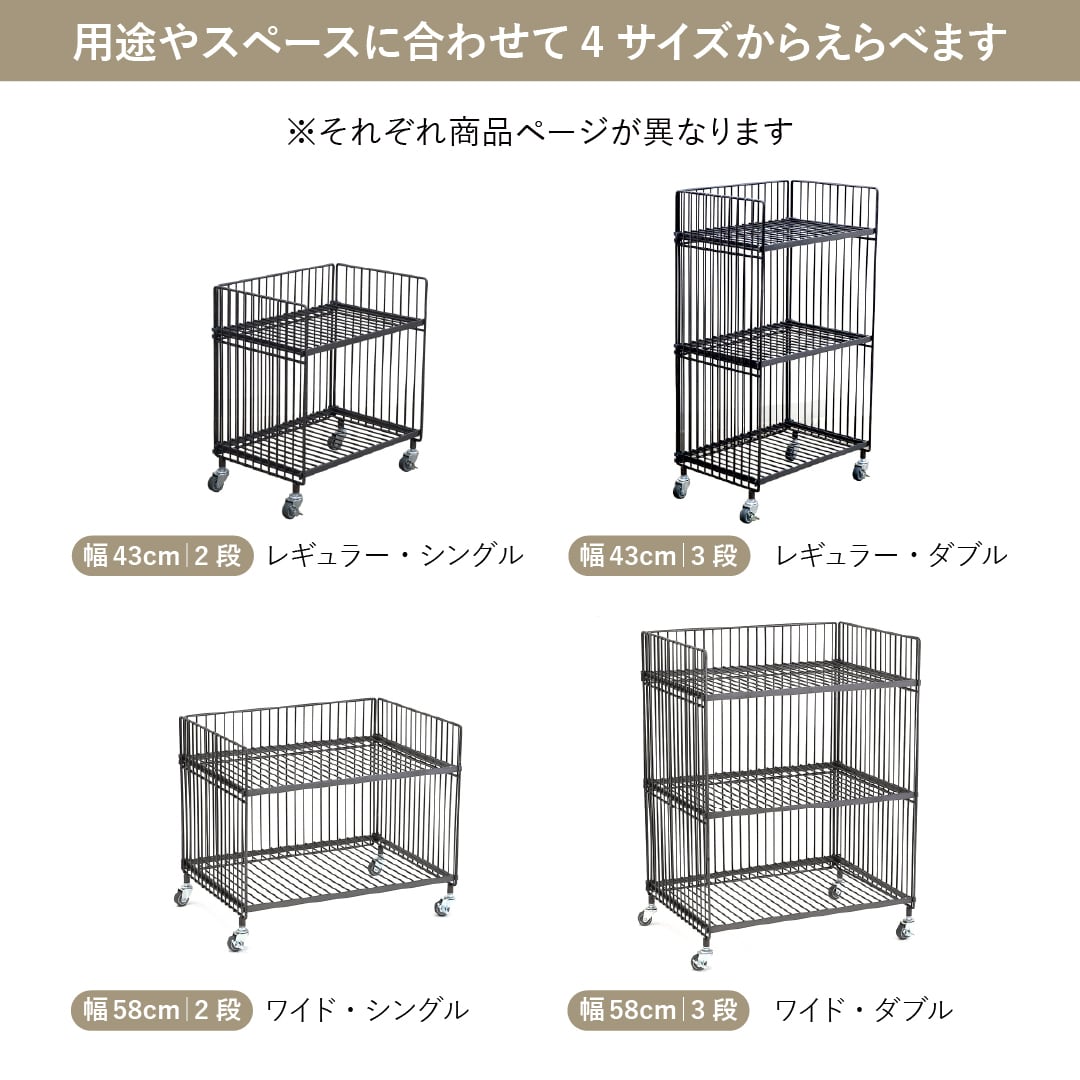 【えらべる2点セット】ワイヤーワゴン(ワイド・シングル)幅58cm|2段