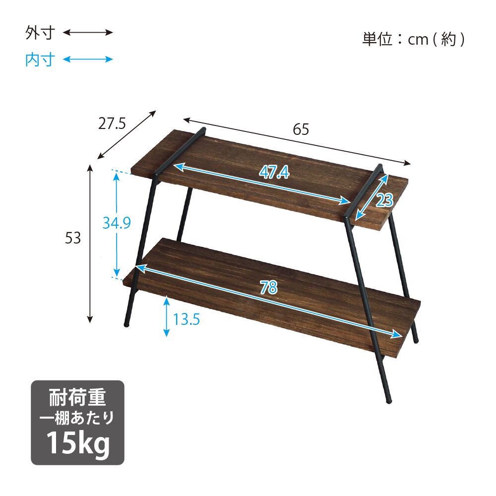 アイアンレッグラック 2段 COLLEND コレンド アイアンラック シェルフ 収納 おしゃれ シンプル 天然木 ディスプレイラック ナチュラルインテリア 飾り棚 オープンラック 見せる収納 収納棚 多用途ラック 組立簡単 工具不要 キャンプ 2段 ナチュラル ダークブラウン かっこいい