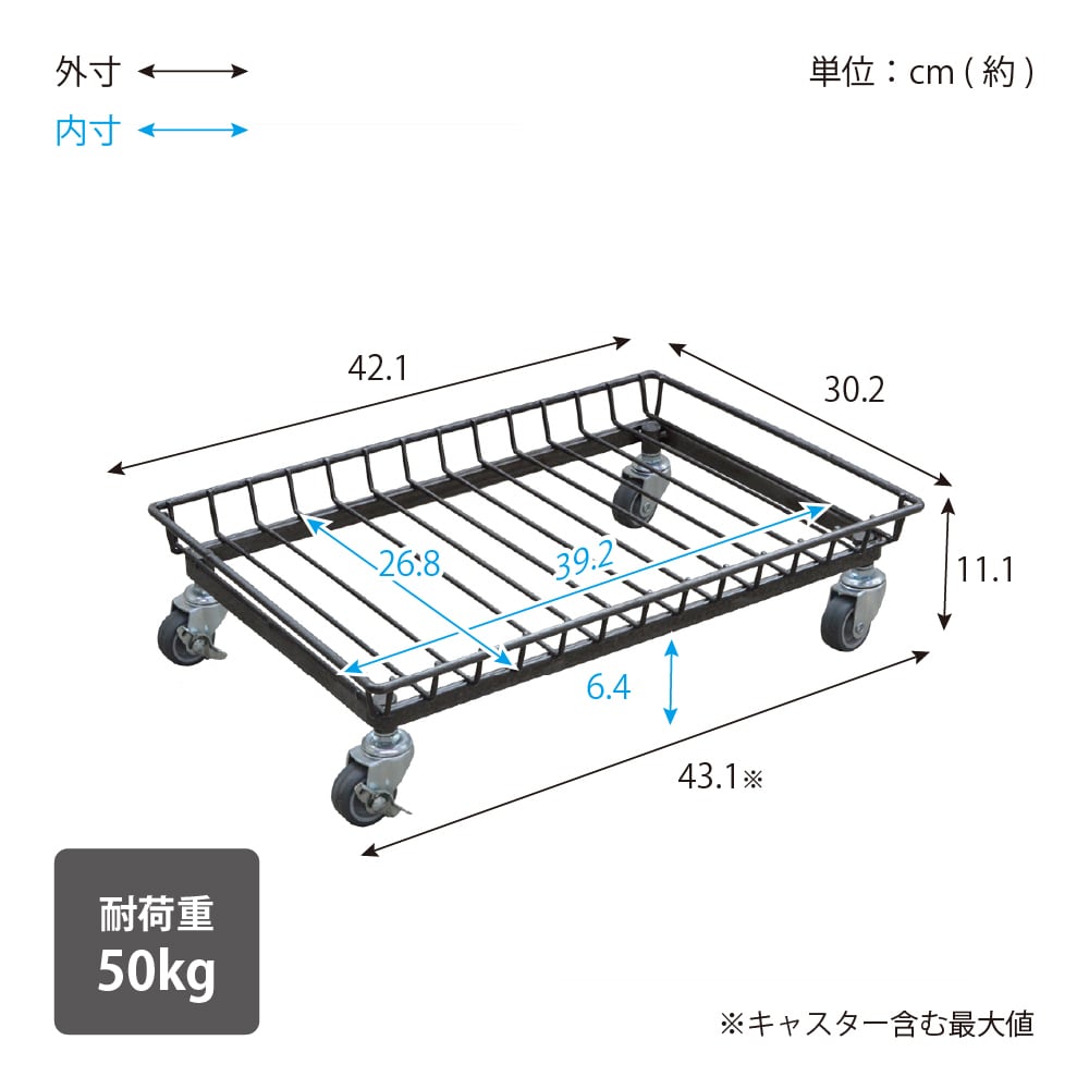 50kgまで載せられて、観葉植物や水、家電、収納ケースなど重量物の移動・保管にもぴったり。