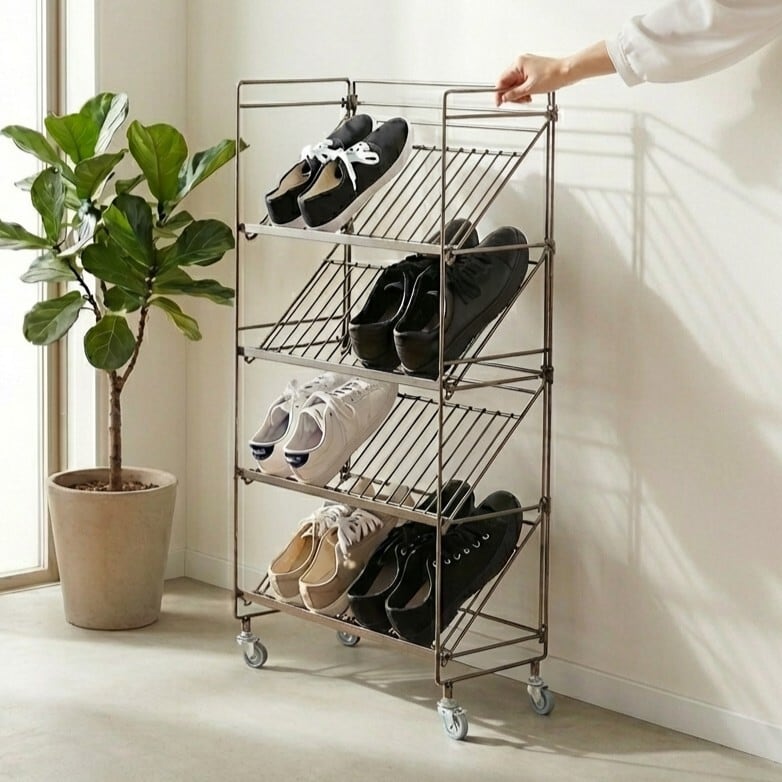 ワイヤーシューズラック 幅49cm|4段