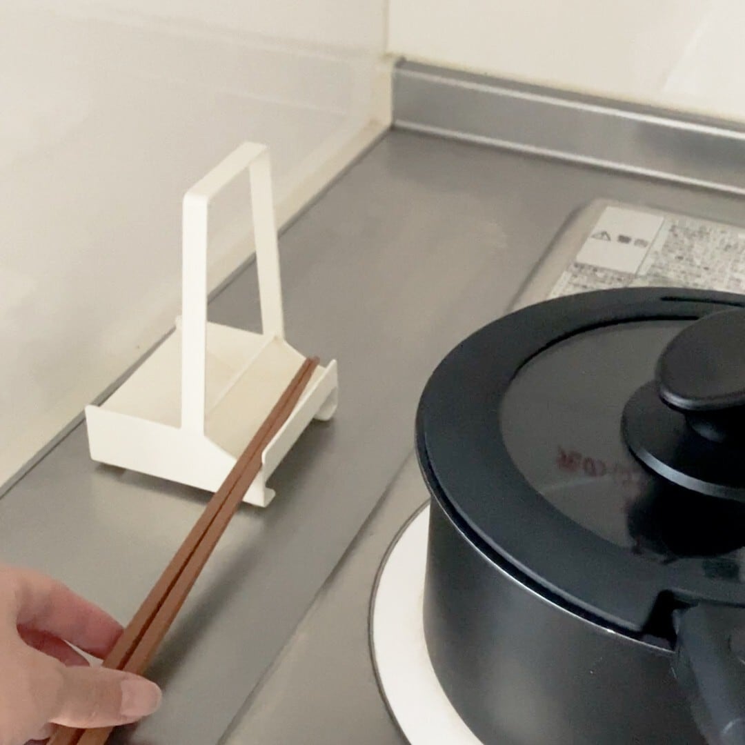 なべ蓋やお玉など調理中のキッチンツールがすっきり置けるスタンド。