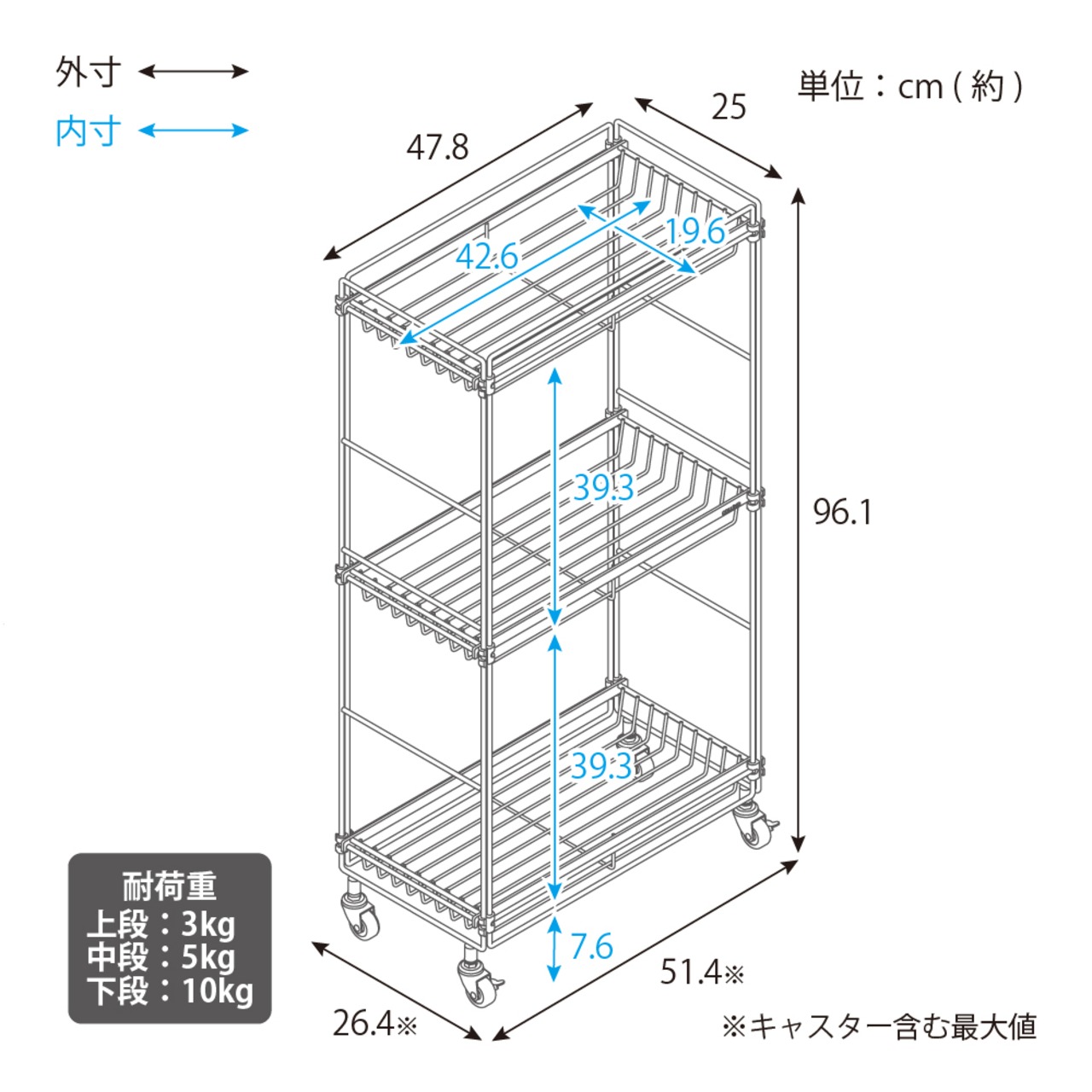インダストリアルな雰囲気のオープンシェルフ。ユニセックスで普遍的な佇まいはどんなインテリアとも調和し、シンプルながら存在感を発揮します。植物を飾ったり、ランドリー収納にも最適。キャスターが付いているので、移動も簡単。