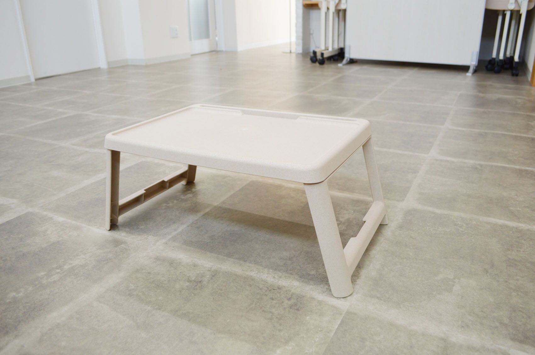 植物由来(もみ殻)原料を25%配合したエコな折りたたみテーブル。