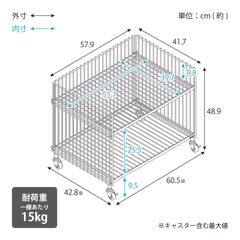 ワイヤーワゴン(ワイド・シングル) COLLEND コレンド スチールワゴン 無骨デザイン インダストリアル かっこいい おしゃれ収納 インナーケース対応 洗面所 キッチン 多用途ワゴン リビング ディスプレイ キャスター付き ストッパー付き 樹脂連結パーツ 組立簡単 2段ワゴン ワイド 大きい