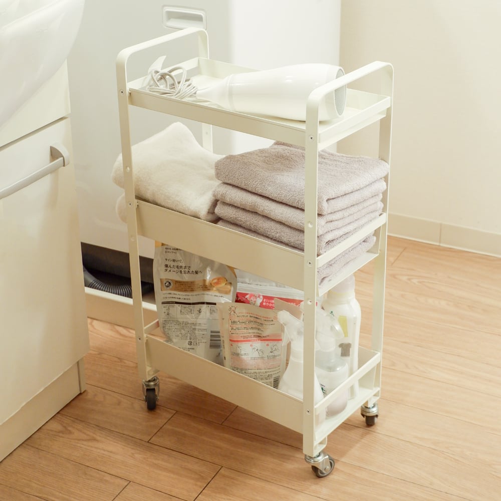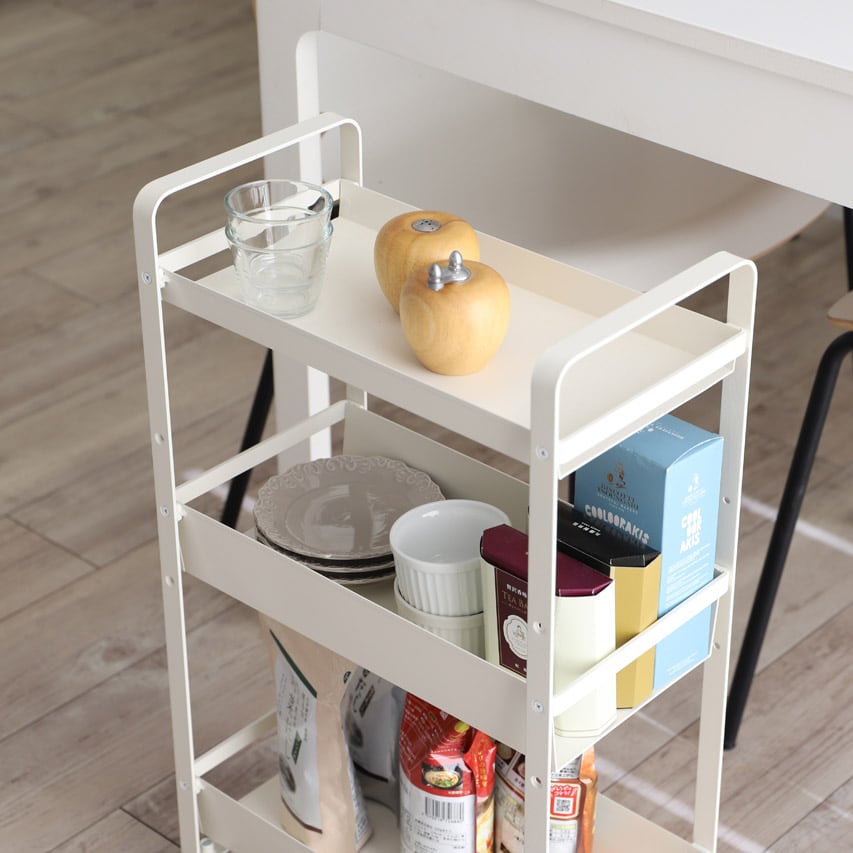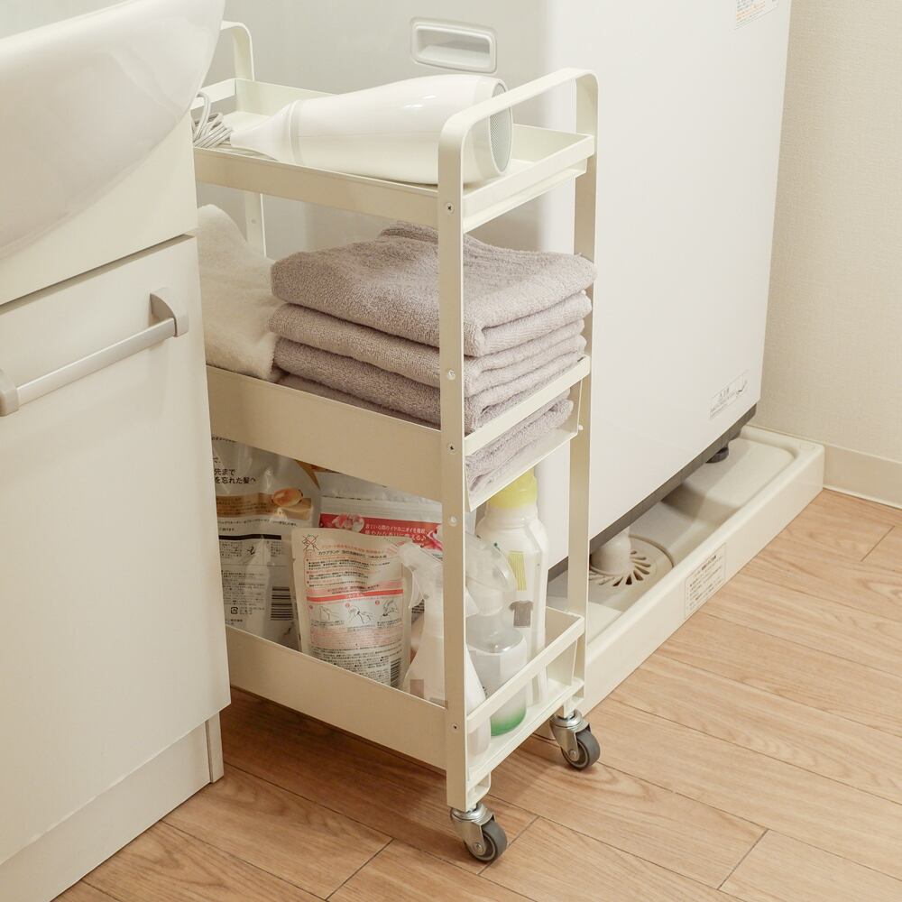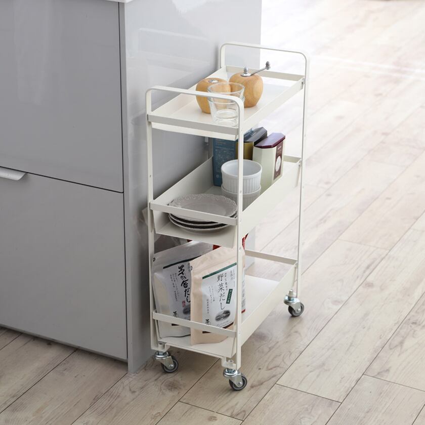 キッチン・リビング・洗面所などあらゆる場面で活躍する、幅21cmのスリムなワゴン。