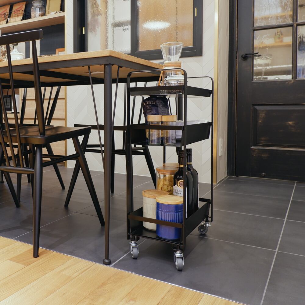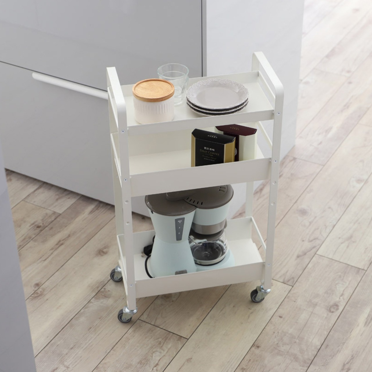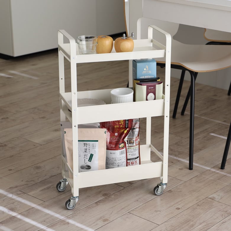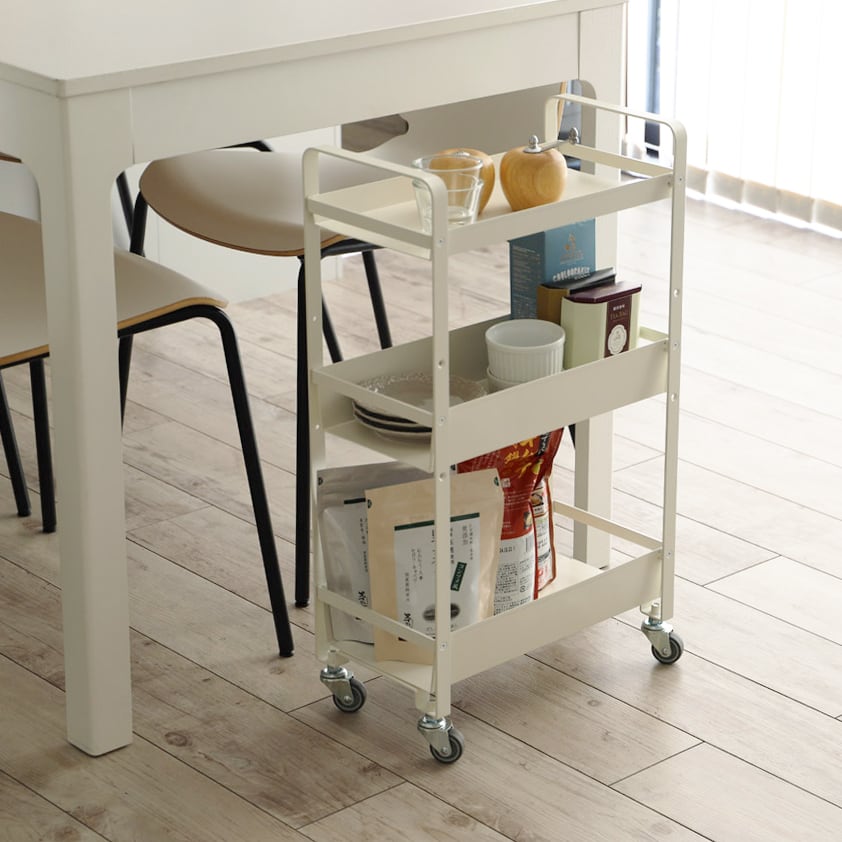 キッチン・リビング・洗面所などあらゆる場面で活躍する、幅21cmのスリムなワゴン。