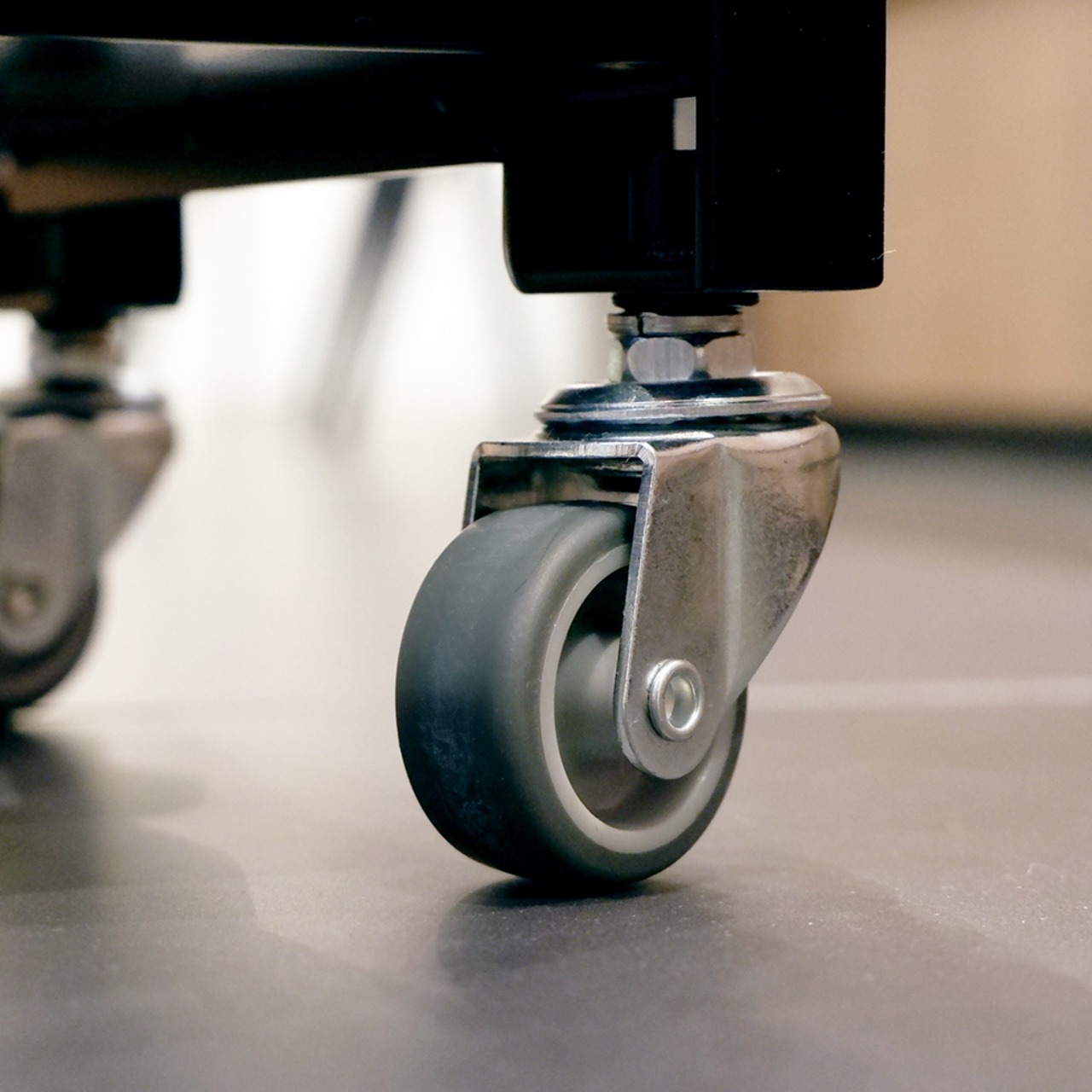 床をキズつけにくく、なめらかに動く”エラストマー製”のキャスターを採用し、移動もラクラク。静音性も高く賃貸での使用も安心。