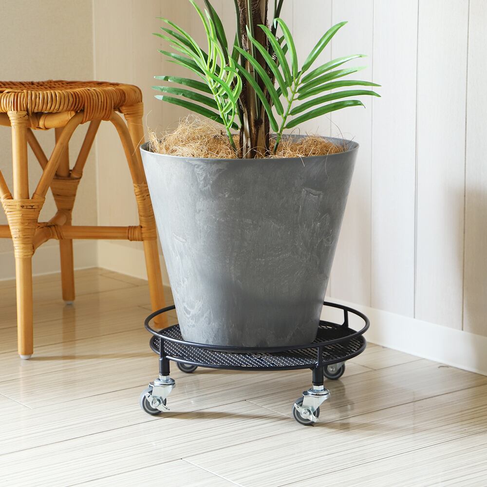 重たい植木鉢を、もっと気軽に移動できるキャスター付きの丸型トロリー。